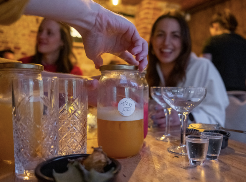 Join us in our award winning bar or enjoy from the comfort of your own home, book your table or take-away a tipsyjar with ice and garnish ready to finish at home.